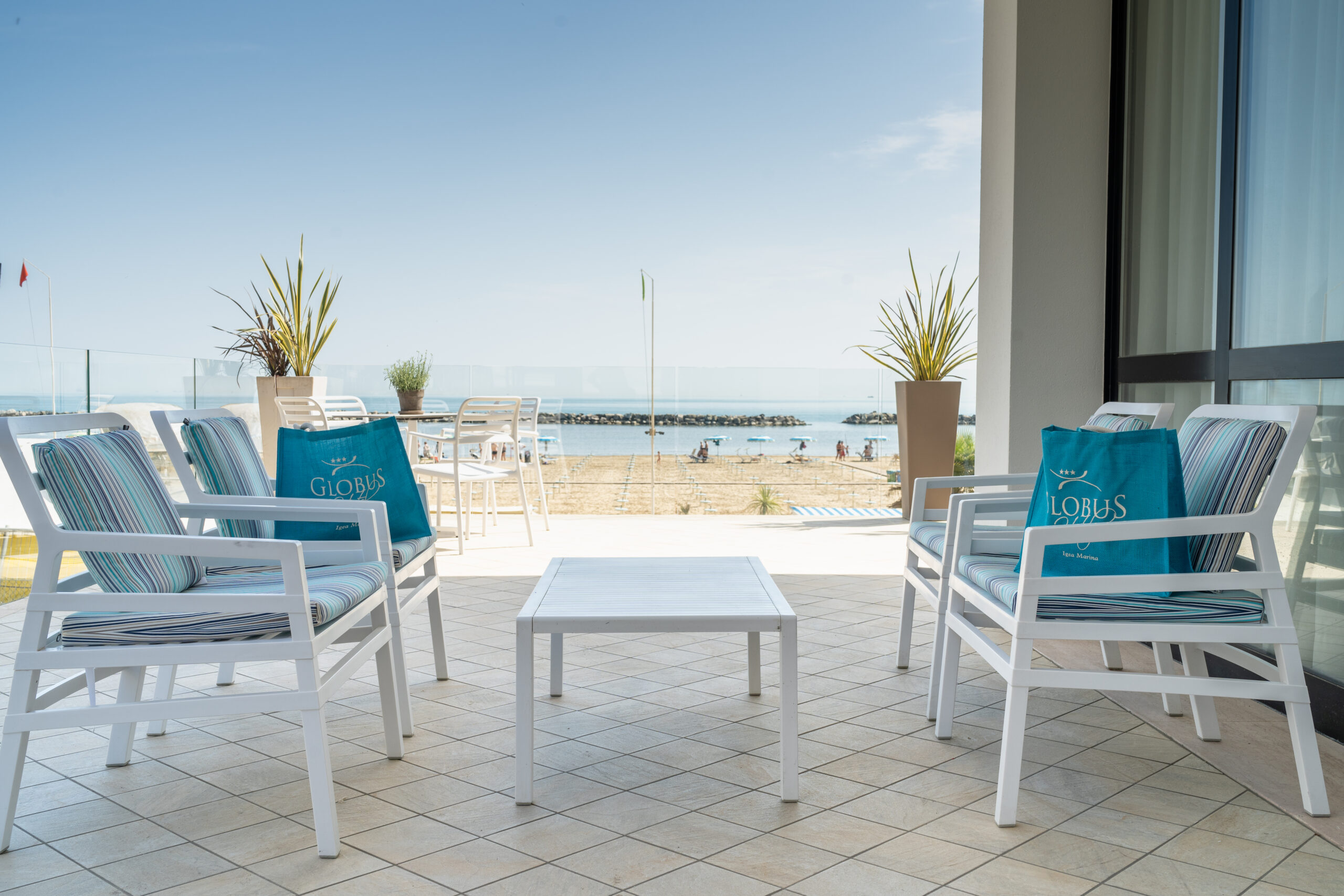 Ampio soggiorno, bar, terrazza fronte mare e grande hall per rilassarsi e condividere la vostra vacanza con famigliari e amici. In questi spazi dell’hotel organizziamo serate a tema, feste e momenti insieme.